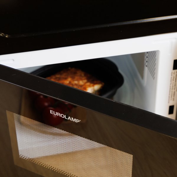 Φούρνος μικροκυμάτων Eurolamp 20 lt / 700W σε μαύρο χρώμα, με 5 επίπεδα ισχύος και λειτουργία απόψυξης. Απλός, αξιόπιστος και κομψός για κάθε κουζίνα.
